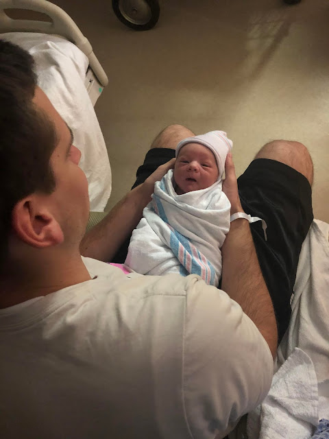 When Brian got home from work that night, we had dinner, he played with Tatum, and we got her into bed at 8 like usual. I decided I was going to go take a bath while Brian submitted some school assignments. I got out of the bath around 8:30, laid down in bed and talked to Brian while he was working, and around 8:45 I felt my first contraction. Because my mom and stepdad hadn’t arrived yet, my cousin Joe and his wife Julie had graciously offered to take Tatum if I went into labor, so I texted Julie around 9:15 and said, “Starting to have some contractions, I'm going to keep track over the next little bit and see where we're at! They just started randomly about an hour ago so we'll see if anything comes of it and I'll keep you posted!” Little did I know...